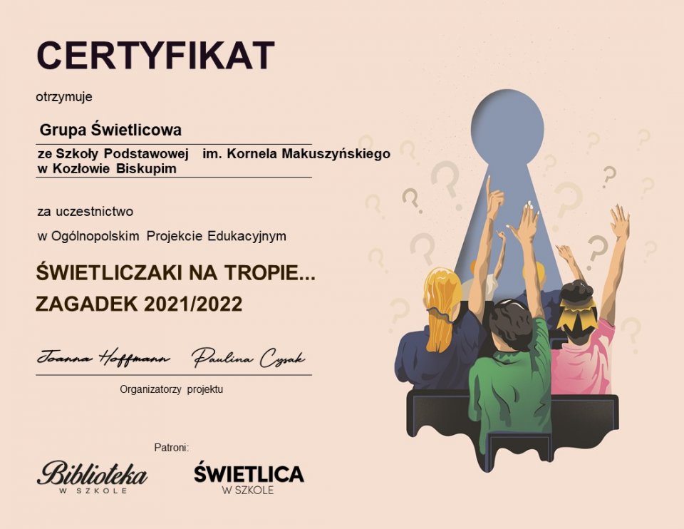Z wielką przyjemności informujemy Was, że nasze dzielne świetliczaki zakończyły udział w II edycji ogólnopolskiego projektu edukacyjnego Świetliczaki na tropie … zagadek pod patronatem Świetlica w Szkole i Biblioteka w Szkole.