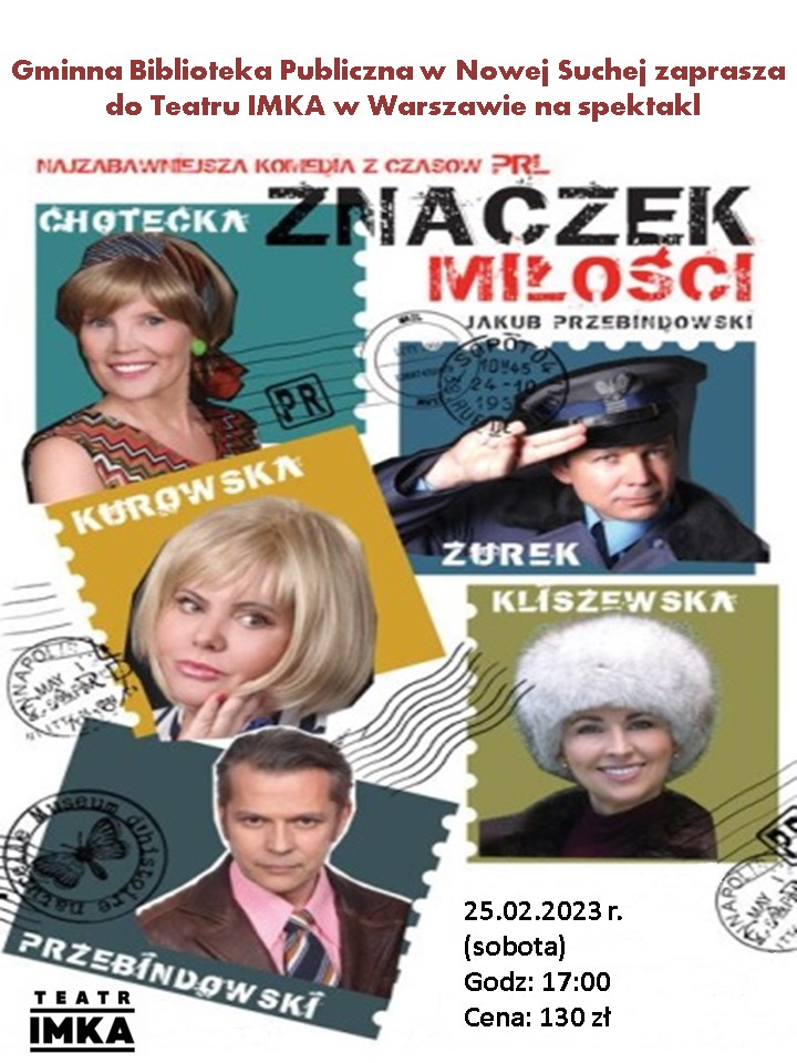Gminna Biblioteka Publiczna w Nowej Suchej zaprasza na wyjazd do Teatru IMKA w Warszawie na spektakl pt.: „Znaczek miłości”.