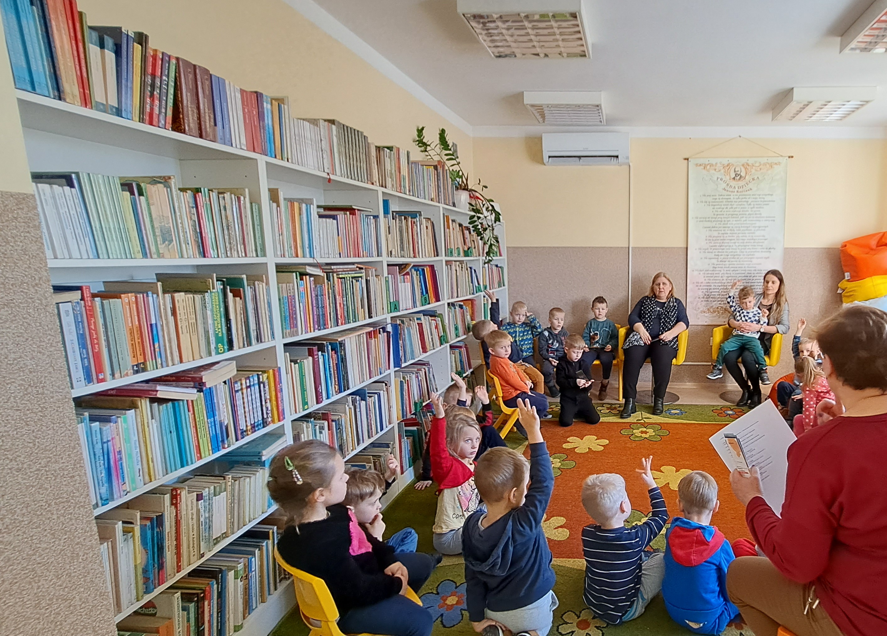 Lekcja biblioteczna dla najmłodszych odbyła się w godzinach porannych. Dzieci zapoznały się z Kącikiem Dziecięcym oraz księgozbiorem, który tam się znajduje, dowiedziały się również, jak można zostać czytelnikiem biblioteki. Przedszkolaki ochoczo odgadywały postacie z bajek i filmów na podstawie przygotowanych wcześniej zagadek. Chętnie wysłuchały bajki pt. „Wilk i siedem koźlątek”.