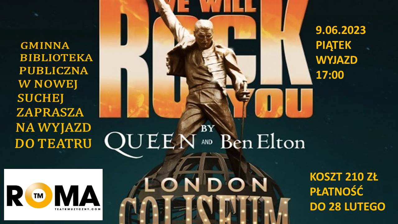 Gminna Biblioteka Publiczna w Nowej Suchej zaprasza na wyjazd do Teatru Roma w Warszawie na spektakl pt. WE WILL ROCK YOU.