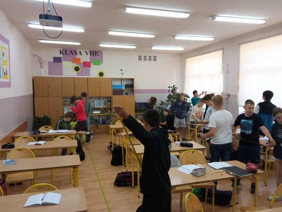 Dzisiaj na lekcji matematyki w ramach realizacji tematu "Obliczanie pól wielokątów" uczniowie klasy szóstej wykonywali pomiary i obliczali kosztorys remontu sali lekcyjnej. Dzięki temu sprawdzili w praktyce swoje umiejętności zdobyte na zajęciach.