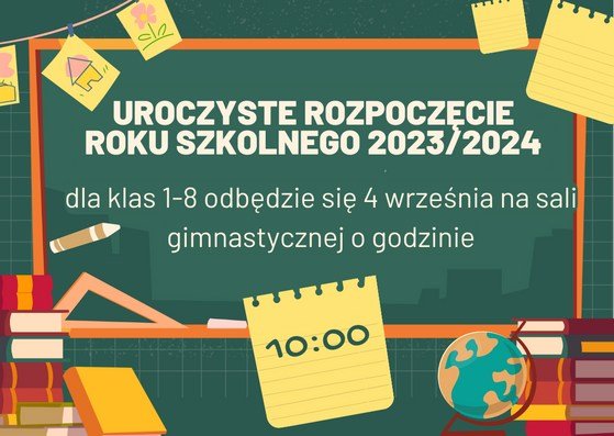 Uroczysta inauguracja roku szkolnego 2023/2024 dla klas 1-8 odbędzie się 4 września (poniedziałek) o godzinie 10:00.