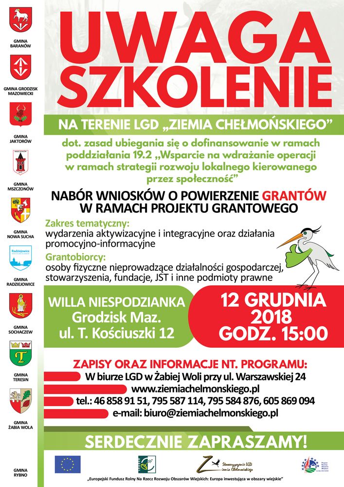 Szkolenie w Grodzisku Mazowieckim dot. zasad ubiegania się o dofinansowanie w ramach poddziałania 19.2"Wsparcie na wdrażanie operacji w ramach strategii w rozwoju lokalnego kierowanego przez społeczność"