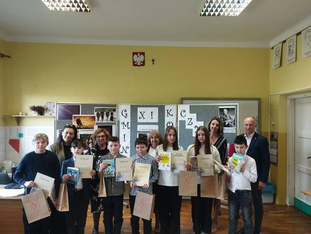 Każdy z uczestników otrzymał książkę i drobne upominki oraz dyplom, które wręczył wójt gminy pan Maciej Mońka.